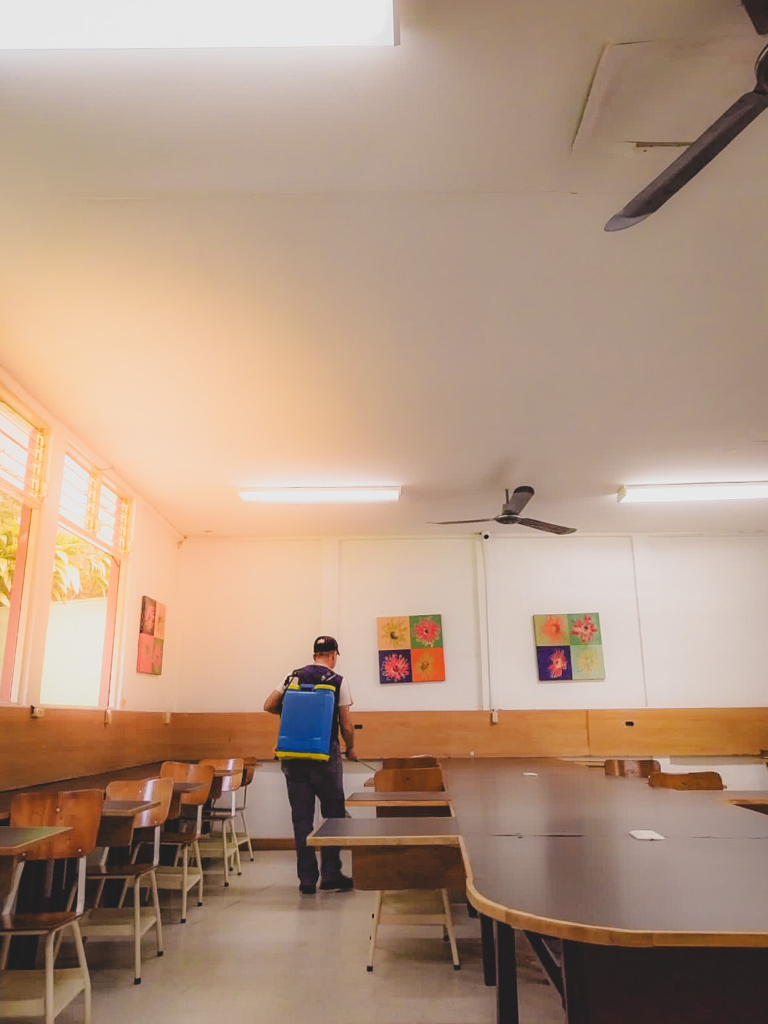 Desde la semana pasada, iniciamos jornadas de fumigación en las instalaciones del colegio. Este procedimiento se llevará a cabo de manera periódica como una medida de prevención para evitar que nuestros estudiantes se contagien con esta enfermedad.