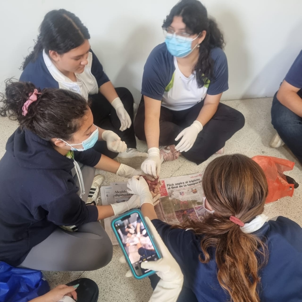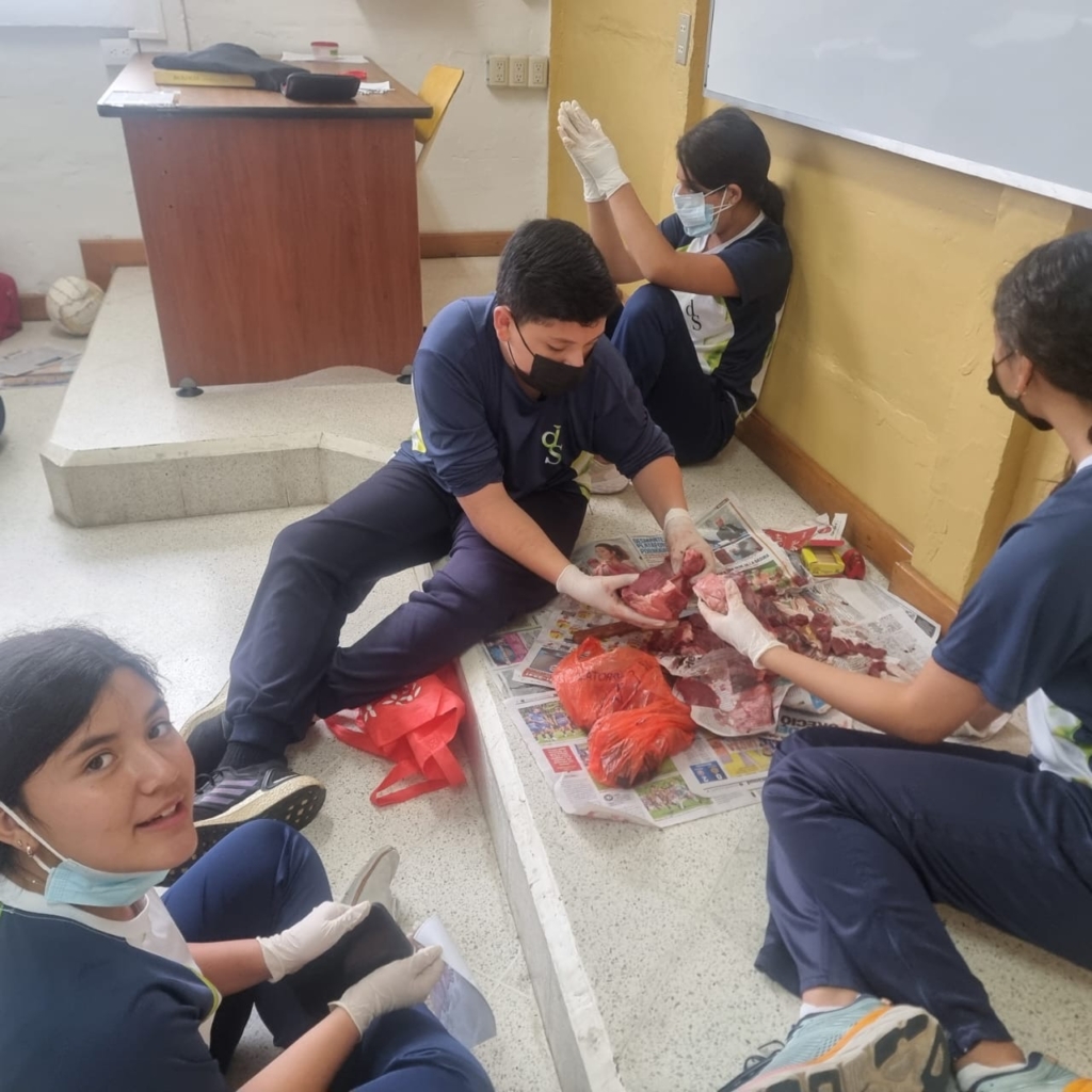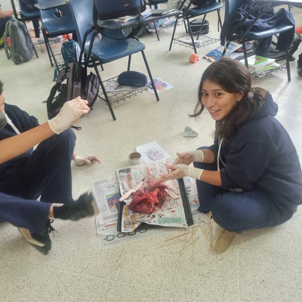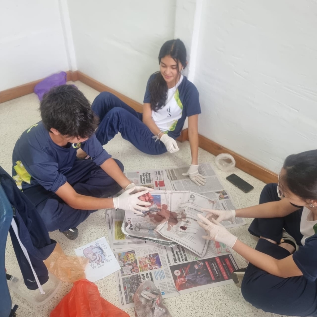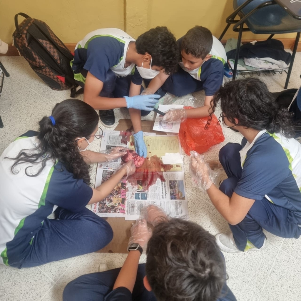 Los estudiantes de segundo básico realizaron la disección de un corazón de cerdo utilizando un corte longitudinal. Esta práctica les permitió explorar la anatomía externa e interna del órgano, identificar sus cuatro cámaras y observar el funcionamiento de las válvulas que impulsan la sangre venosa y arterial dentro del sistema circulatorio.